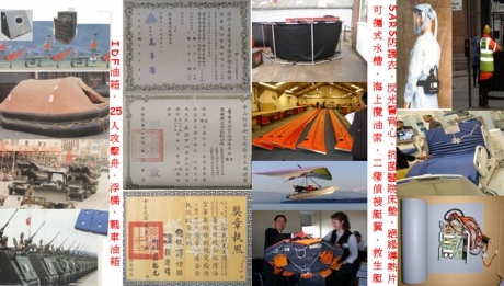高機能橡膠材料,適用於須曝露在惡劣環境(高溫、強風、振動..等)之戰鬥設施(如各式軍用船隻、戰機、戰車用油箱水槽、救生衣、防毒衣、浮橋等)本體材料。 |