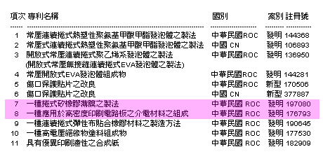 常壓連續捲式橡膠發泡壓紋製法 2001/6/29 ROC 發明 |